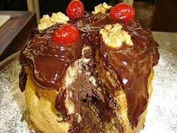 Leve ao fogo o chocolate picado junto com o café. Deixe derreter em fogo brando, mexendo sem parar com uma colher de pau. Tire do fogo e adicione a manteiga e 2 colheres de sopa de rum. Mexa bem. Bata a gema com o açúcar até obter um creme espumoso. Junte esse creme ao chocolate derretido e misture bem. Corte uma tampa de 3 cm de espessura do panetone. Tire o miolo, deixando uma parede de 3 cm de espessura nas laterais e no fundo. Numa tigela, esmigalhe o miolo que retirou do panetone e misture com a castanha. Junte ao creme de chocolate e mexa bem. Bata bem o creme de leite e adicione à mistura. Por último, acrescente a clara em neve. Pincele a parte de dentro do panetone e da tampa com o restante do rum. Recheie o panetone e nivele bem a superfície com uma faca. Cubra com a tampa. Leve à geladeira e deixe por 1 hora, no mínimo, antes de servir.